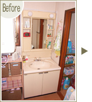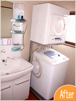 S様よりひとこと広くなった浴槽で毎日バスタイムを楽しんでいます。洗面室・洗濯室もリフォームしたので、ゆったりと使いやすい空間になりました。